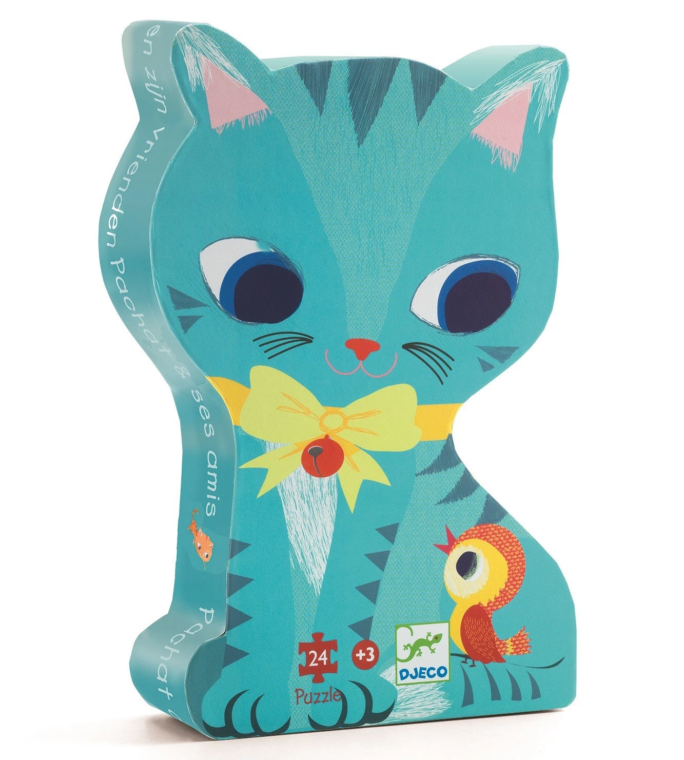 Een DJECO puzzel voor peuters in een prachtige doos in de vorm van kat Pachat. Op de puzzel vind je Pachat en zijn katten vrienden, de puzzel heeft 24 grote stukken en het formaat van puzzel 42 x 30 cm.