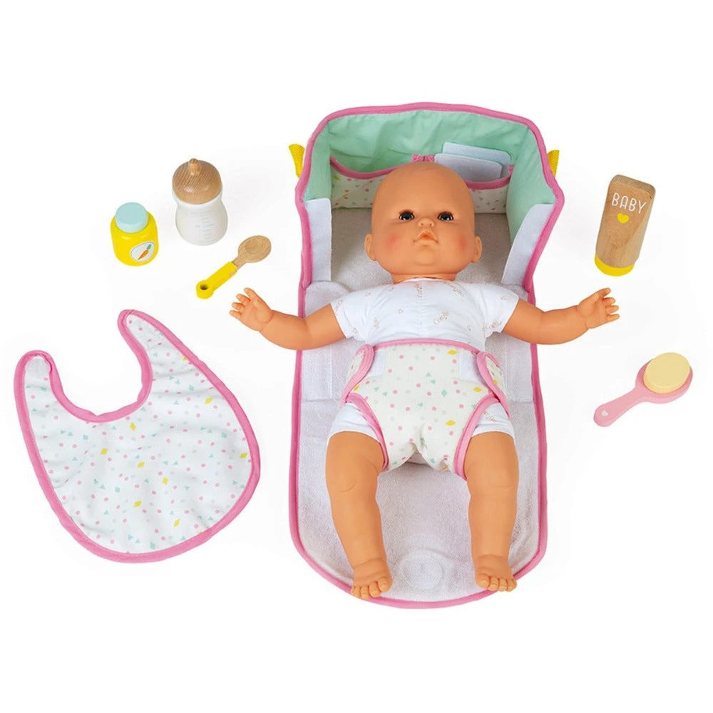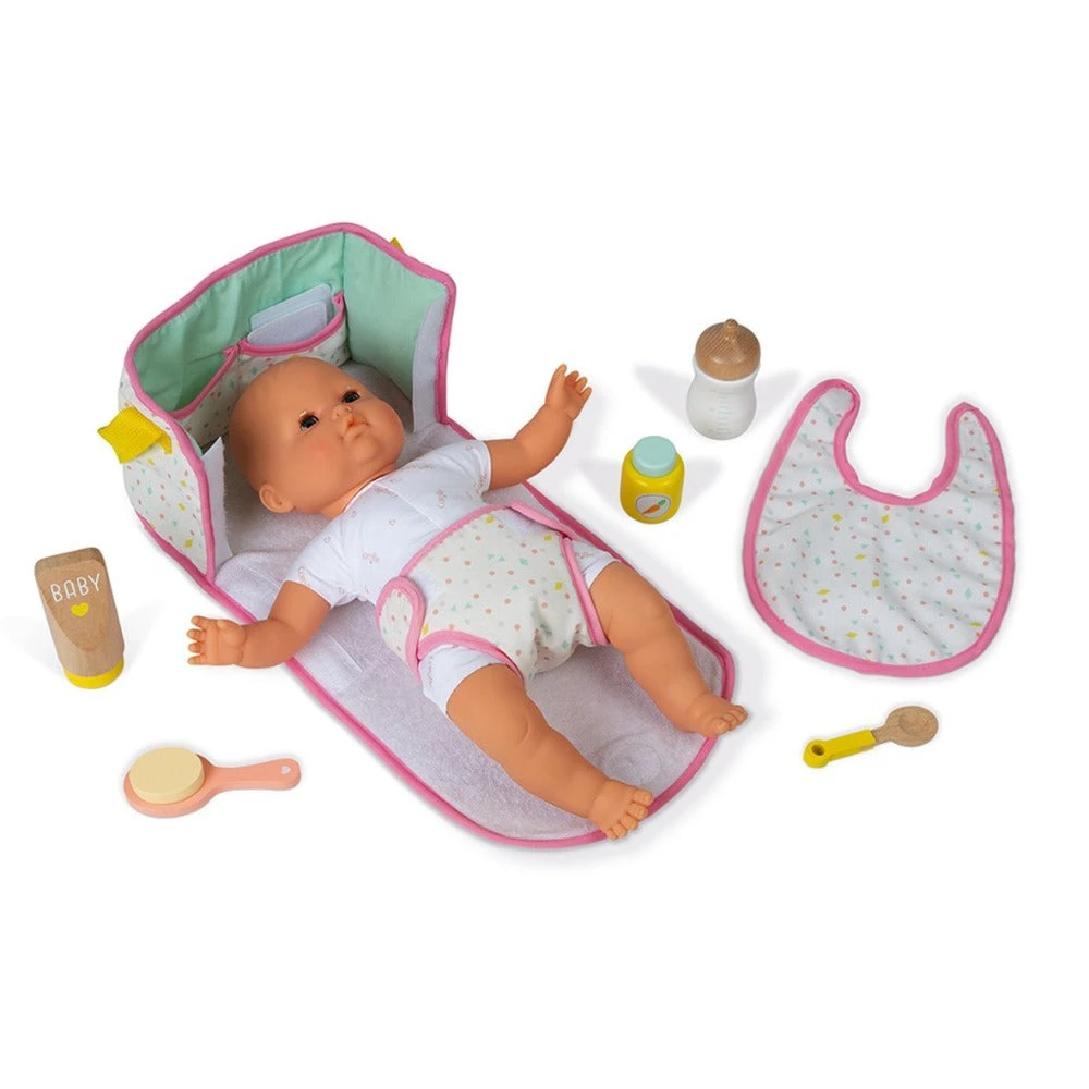 Deze JANOD verschoningstas is een complete speelgoed set voor elke poppenmoeder en -vader om hun knuffels en poppen te verzorgen. Dit 9 delige pretend and play speelgoed bevordert de fantasie van je kind. In de uitvouwbare tas zit alles wat je nodig hebt om je babypop te verzorgen.Â
