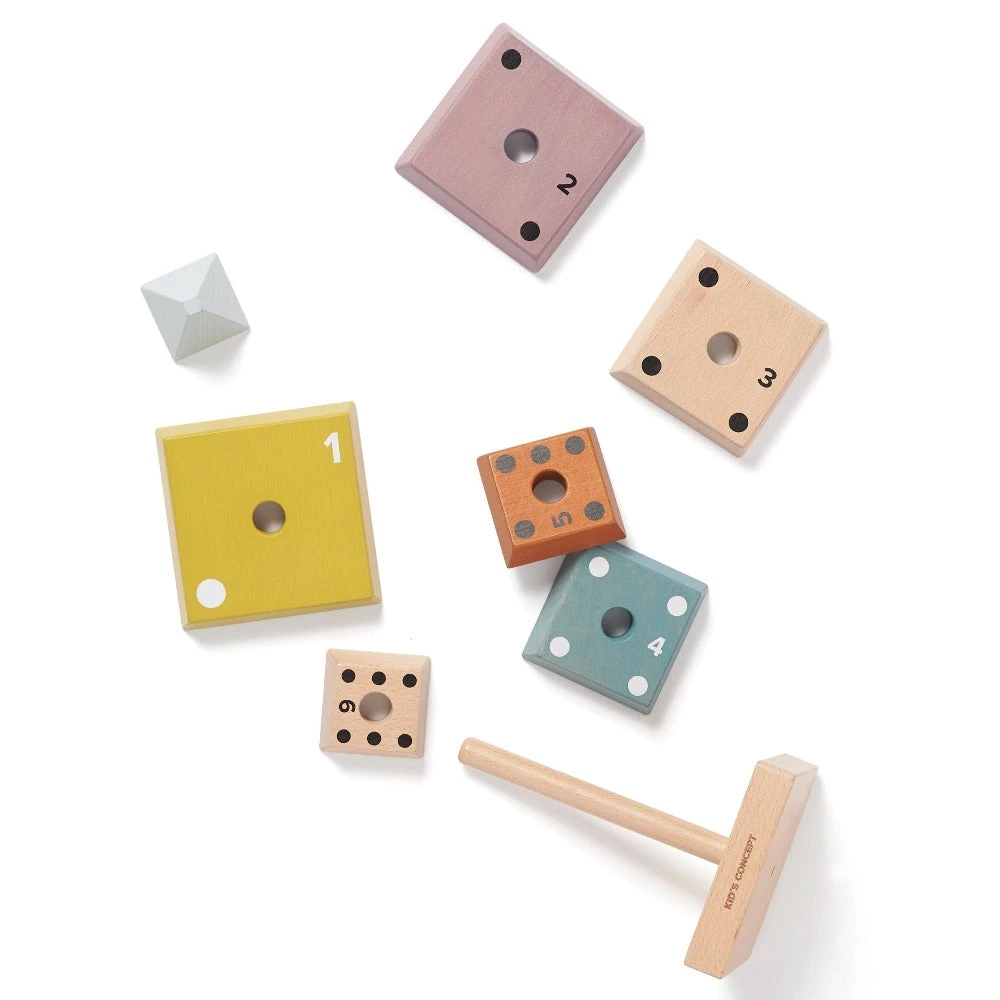 Kids Concept stapeltoren in de vorm van een pyramide met 6 houten stapelringen en een knop. Stapel de toren en bouw een pyramide. De ringen zijn gekleurd met verf op waterbasis in mooie heldere kleuren, heel aantrekkelijk voor de allerkleinsten om mee te spelen.