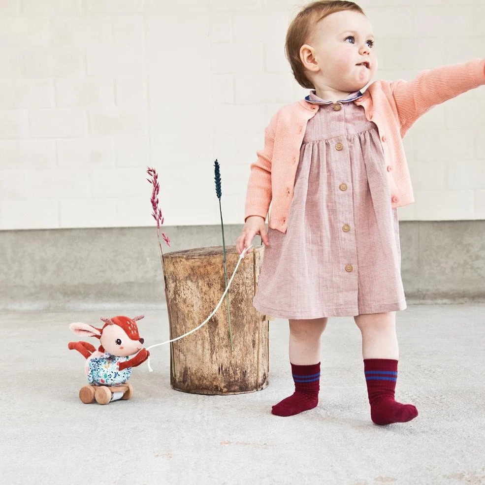 Lilliputiens trekfiguur en knuffel in 1! Het hertje Stella trek je rond op haar houten karretje met wielen, en als je op de bestemming bent haal je haar los met de klitteband op haar buikje. Zo kun je lekker knuffelen met de knuffel in de vorm van een hertje. Â