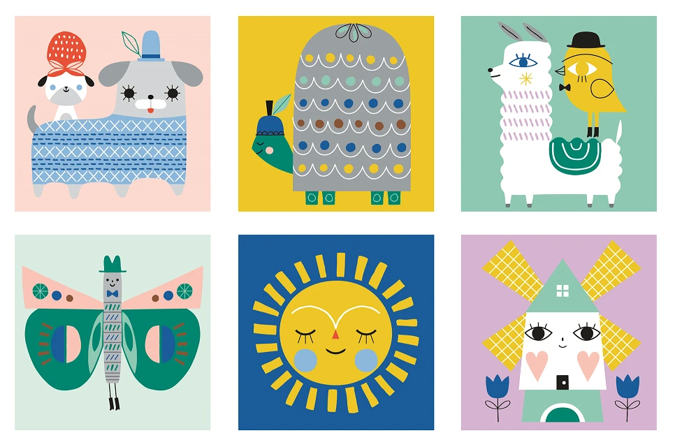 Draai de blokken net zo lang tot je het juiste plaatje hebt. Peanut & Friends zijn een beetje vreemd en hebben contrasterende kleuren. Leuk om mee te spelen en een mooie accessoire voor de kinderkamer.