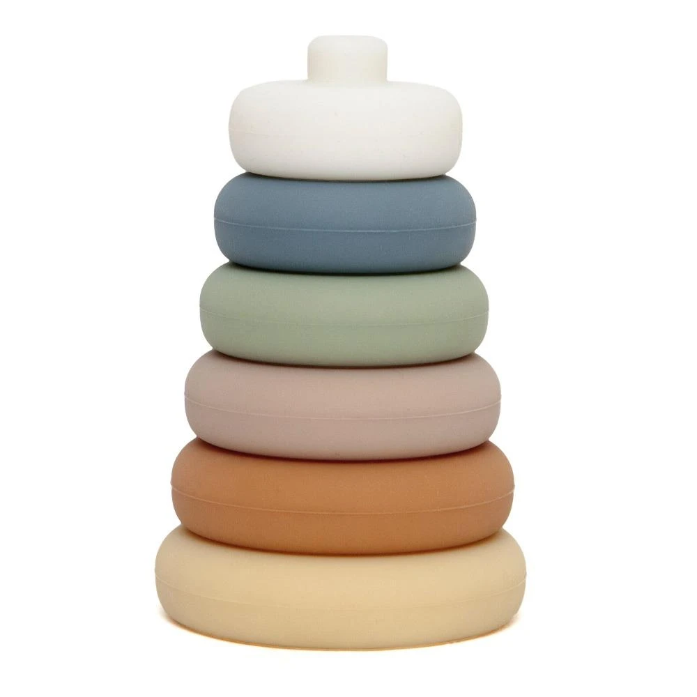 Petit Monkey siliconen stapeltoren Nevaeh is duurzaam babyspeelgoed voor baby’s vanaf 6 maanden. Deze desert sage stapeltoren is een eco kraamcadeau.